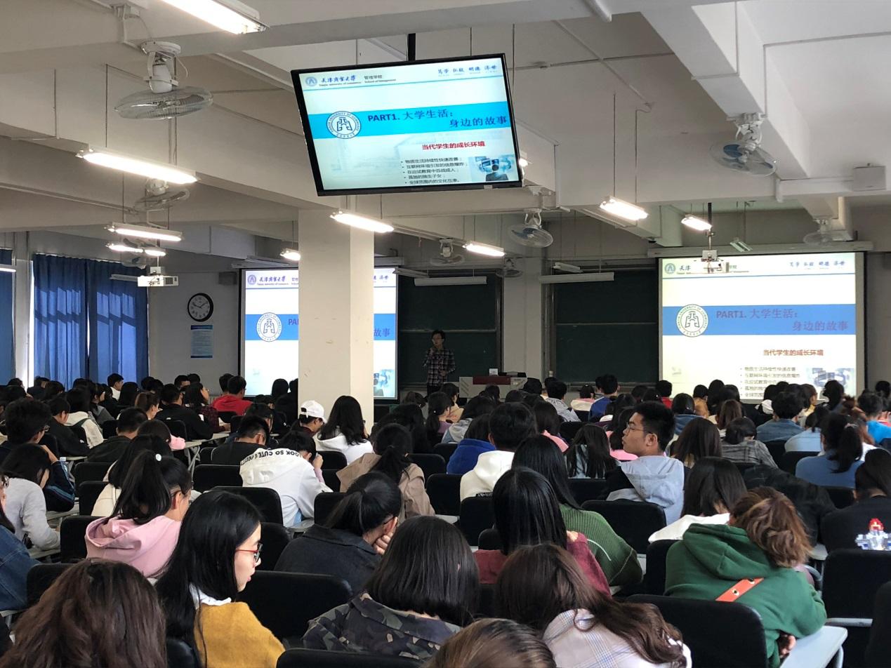 10月24日下午,太阳成集团tyc41183在七教302教室举办学业生涯规划系列讲座。管理创新与评价中心教师刘超超博士担任主讲嘉宾,作了题为《大学生活、企业、科研及专业知识》的报告。刘超超毕业于天津大学管理科学与工程专业,现任太阳成集团tyc41183兼职辅导员。太阳成集团tyc41183团委负责老师彭妍、新媒体中心指导老师刘佳林出席,200余名来自8个专业的2018级新生参加讲座。