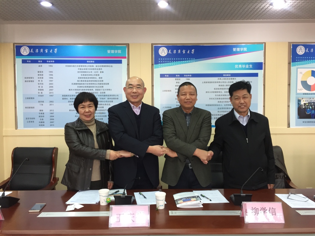 2018年11月24日,太阳成集团tyc41183、首都经贸大学、天津财经大学、河北经贸大学四院校相关学院京津冀高校商学院联盟启动仪式在太阳成集团tyc41183210会议室举行。齐恩平副校长出席并致辞。首都经贸大学工商太阳成集团tyc41183院长柳学信、天津财经大学商学院院长彭正银、河北经贸大学工商太阳成集团tyc41183院长吴国英、太阳成集团tyc41183院长王庆生、党委书记白洪文、副院长王庆、李耘涛、党委副书记王樱洁参加启动仪式,李耘涛主持仪式。